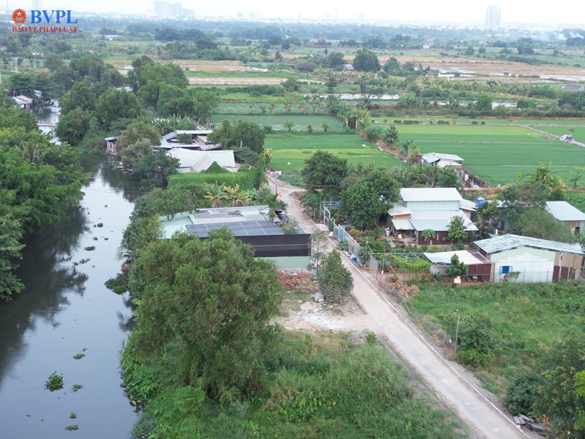 | Khu vực tại xã Đông Thạnh, TPHCM có dấu hiện xây dựng công trình nhà ở... trên đất nông nghiệp. |