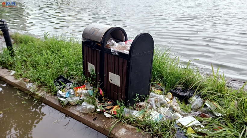 | Đủ các loại rác thải nhựa bủa vây công viên. |