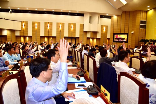 | Các đại biểu biểu quyết tại phiên họp sáng 5/12 |