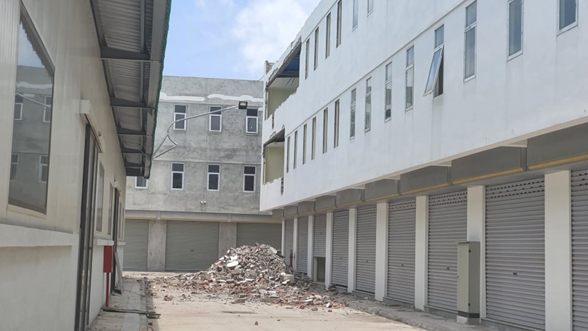 | Một số ki-ốt xây 3 tầng liền kề trong chợ. |