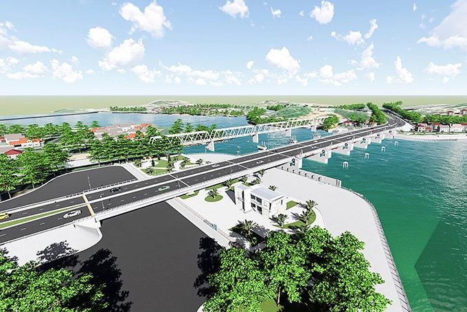 | Phối cảnh công trình Đập ngăn mặn kết hợp cầu đường bộ trên sông Cái Nha Trang. |