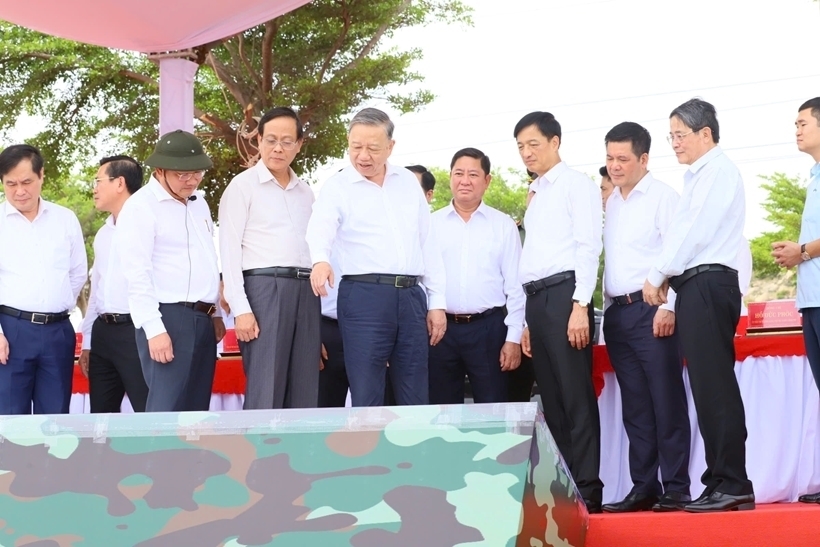 | Tổng Bí thư Tô Lâm và đoàn công tác Trung ương thị sát thực địa vị trí quy hoạch Nhà máy điện hạt nhân Ninh Thuận, ngày 5/12/2024. Ảnh: VN. |