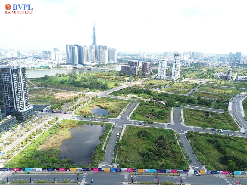 | Nhiều khu "đất vàng" tại khu đô thị mới Thủ Thiêm đã hoàn tất công tác giải phóng mặt bằng, thi công xây dựng hoàn thành các tuyến đường và hạng mục cây xanh, chiếu sáng. (Ảnh: Xuân Trường). |