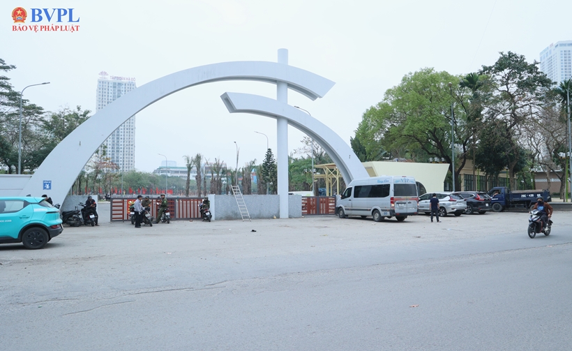 | Khu vực Cổng số 4 Công viên Cầu Giấy được lực lượng chức năng tháo dỡ barie điểm trông giữ xe và không cho ô tô khách dừng, đỗ chiếm lối vào công viên. |