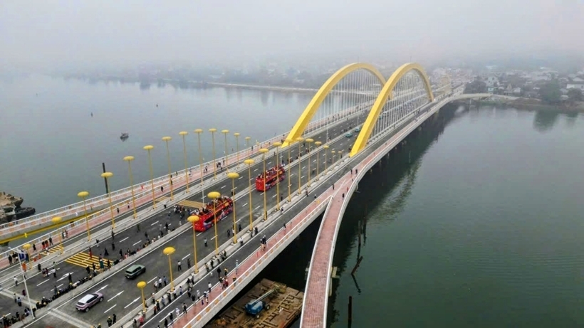 | Cầu Nguyễn Hoàng - cây cầu vòm thép bắc qua sông Hương, TP Huế chính thức đưa vào hoạt động thắng 4/2025. |