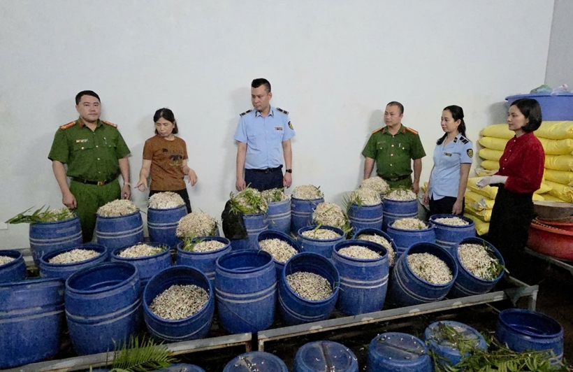 Trước đó, trong khoảng thời gian từ 19h đến 21h ngày 8/4/2026, Đội Chống buôn lậu thuộc Phòng Cảnh sát kinh tế Công an tỉnh Quảng Ninh đồng loạt kiểm tra, bắt quả tang 2 cơ sở sản xuất giá đỗ tại khu Kim Lăng, phường Quảng Yên đang có hành vi sử dụng hóa chất cấm trong quá trình sản xuất.