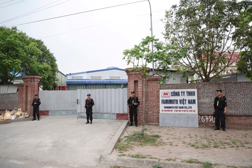 Cụ thể, sáng 24/4, Công an tỉnh Phú Thọ bất ngờ đột kích, khám xét khẩn cấp xưởng sản xuất và kho hàng của Công ty TNHH Famimoto Việt Nam tại địa chỉ Khu Đồng Đồi, xã Thụy Vân, thành phố Việt Trì, tỉnh Phú Thọ.