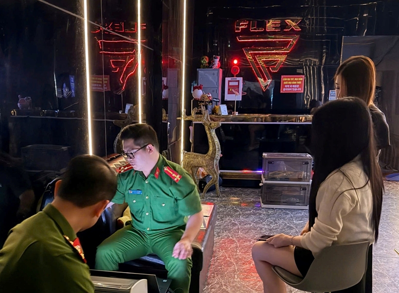 | Phòng Cảnh sát quản lý hành chính về trật tự xã hội kiểm tra cơ sở kinh doanh Flex night club. Ảnh: CAHP |