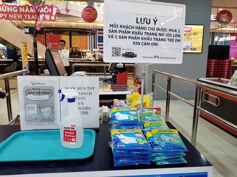 Còn tại TP. Hồ Chí Minh, theo Bộ Công thương thông tin thì hiện hệ thống nhà thuốc Pharmacity vẫn có khẩu trang y tế để bán với số lượng hạn chế. Tại hệ thống siêu thị Coop Mart, lượng khách mua sắm các mặt hàng thiết yếu tăng mạnh do tâm lý người tiêu dùng e ngại dịch bệnh kéo dài dẫn đến thiếu hụt thực phẩm. Tuy nhiên, đại diện siêu thị cho biết lượng hàng hóa thiết yếu vẫn đảm bảo để cung cấp, không có tình tạng khan hiếm.