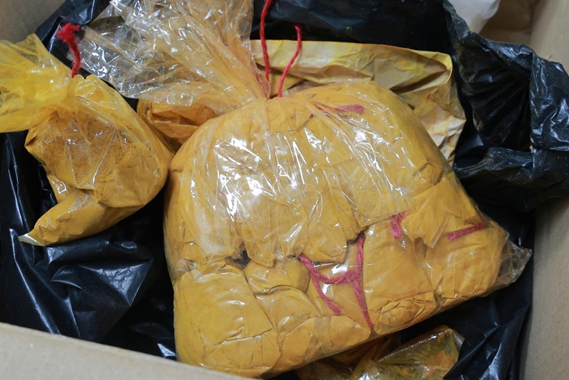 | Riềng xay thành phẩm được trộn chất tẩy đường và chất Vàng O bị thu giữ. Ảnh: CABN |