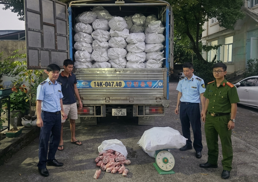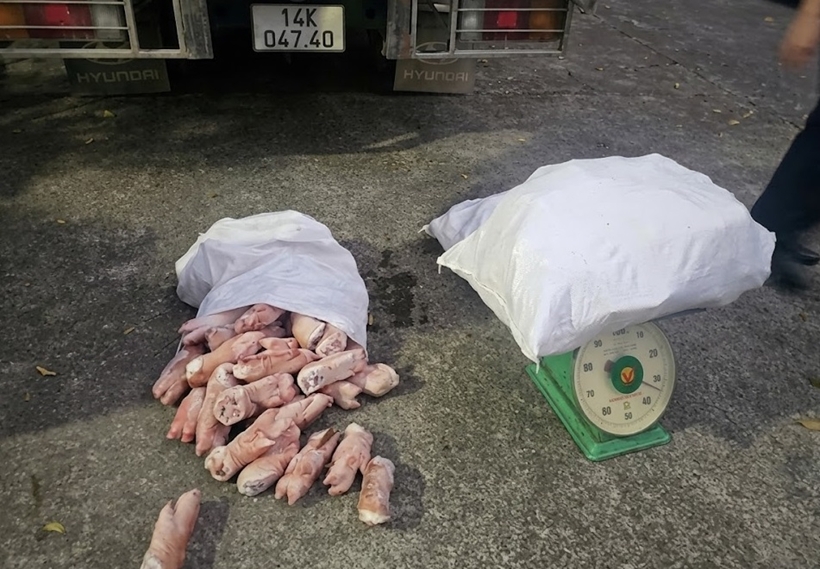 Thời điểm kiểm tra, lực lượng chức năng phát hiện trên xe do Nguyễn Văn Thanh (SN 1992, trú thôn Pò Hèn, xã Hải Sơn) điều khiển đang vận chuyển 10.200kg chân lợn đông lạnh không có giấy tờ chứng minh nguồn gốc, xuất xứ. Qua kiểm tra bằng cảm quan, số hàng này bốc mùi hôi, có dấu hiệu không bảo đảm chất lượng vệ sinh an toàn thực phẩm.