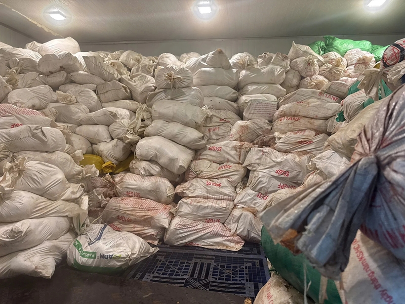 Lực lượng chức năng kiểm tra kho lạnh, lực lượng chức năng ghi nhận khoảng 59 tấn lòng nguyên liệu được cấp đông trong 3 container từ 4 đến 6 tháng; 1 tấn lòng đang trong quá trình sơ chế; 3,6 tấn lòng đã thành phẩm.