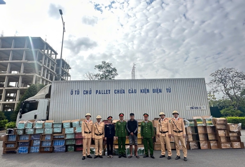 Quá trình kiểm tra phát hiện trên thùng xe ô tô tải biển kiểm soát 29K-020.13 có 148 kiện hàng hóa, cất giấu tổng cộng 111.190 bao thuốc lá điếu các loại, do nước ngoài sản xuất, không có hóa đơn, chứng từ chứng minh nguồn gốc xuất xứ, ước tính trị giá trên 6 tỉ đồng.