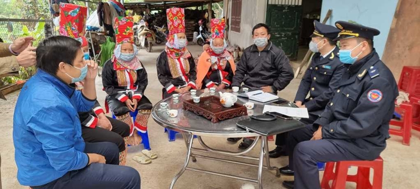 | Cán bộ Chi cục Hải quan cửa khẩu Hoành Mô trong một lần tuyên truyền người dân trên địa bàn không tiếp tay cho đối tượng buôn lậu. (Ảnh: quangninh.gov.vn) |
