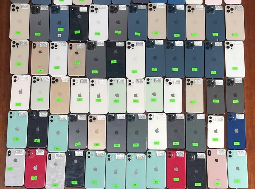 | Số điện thoại iPhone không rõ nguồn gốc, xuất xứ được lực lượng chức năng tạm giữ. Ảnh: QLTT |