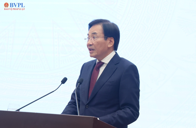 | Bộ trưởng, Chủ nhiệm Văn phòng Chính phủ Trần Văn Sơn thông tin tại buổi họp báo. |