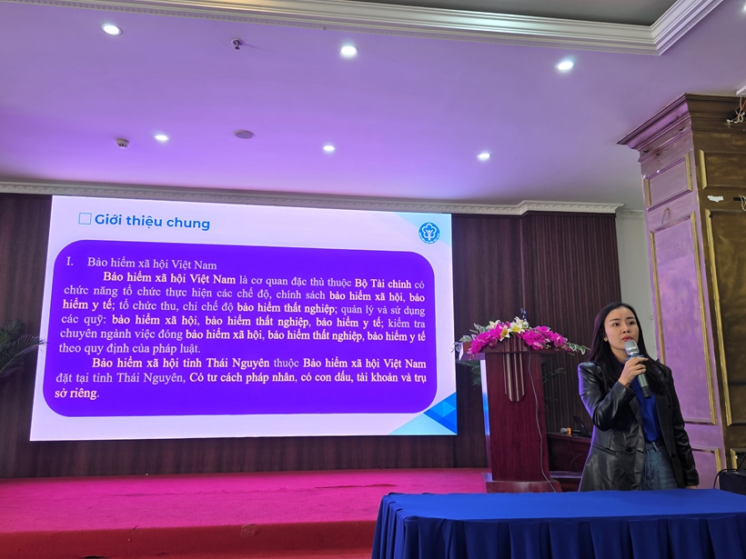 | Báo cáo viên Ngân hàng Chính sách tỉnh Thái Nguyên thuyết trình tại Hội nghị. |