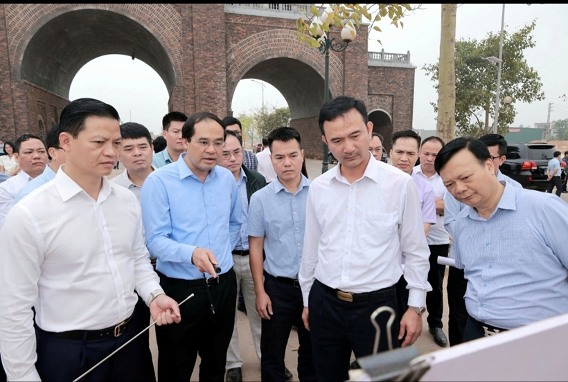 | Đồng chí Trịnh Xuân Trường, Bí thư Tỉnh ủy và đồng chí Vương Quốc Tuấn, Chủ tịch UBND tỉnh kiểm tra những khó khăn, vướng mắc để tháo gỡ cho các dự án trên địa bàn tỉnh. |