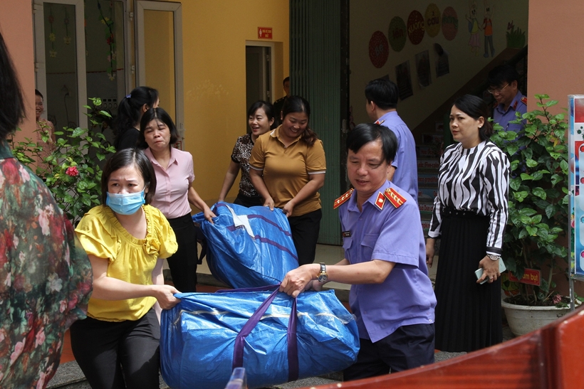 | Niềm vui của Kiểm sát viên được mang quà tặng tận tay các em học sinh. |