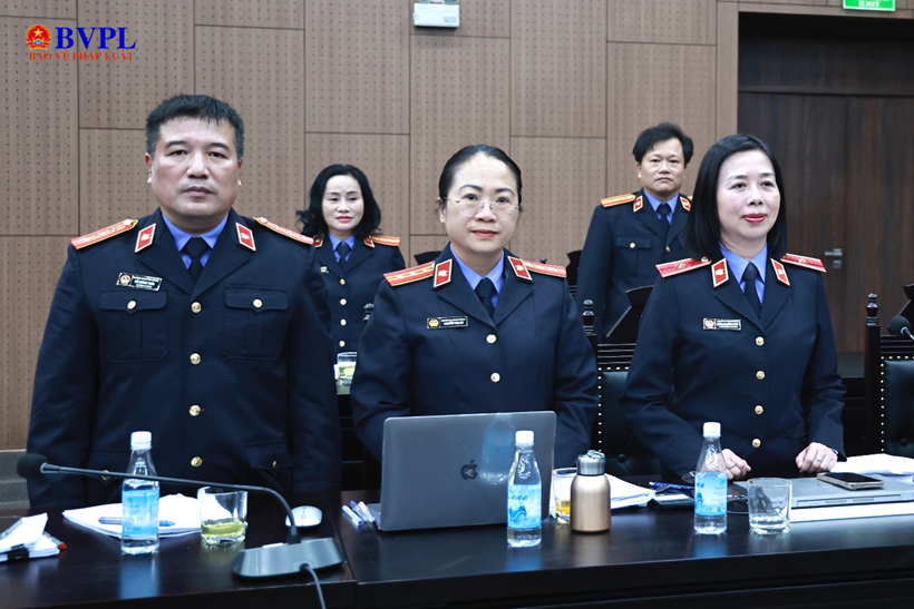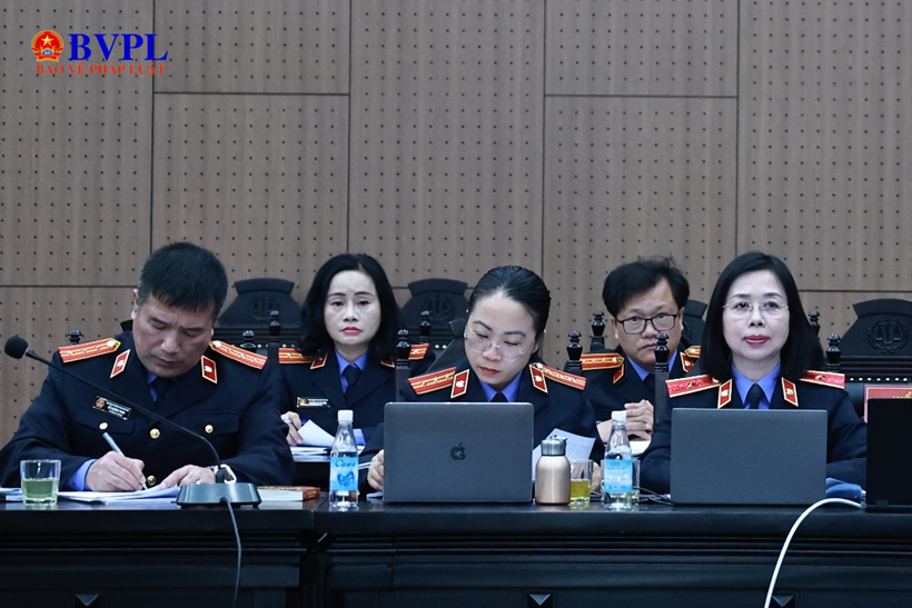 | Các Kiểm sát viên thực hành quyền công tố và kiểm sát xét xử tại phiên tòa xét xử sơ thẩm "đại án" Việt Á. |
