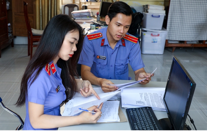 | Công việc hiện tại của Thanh Trà là giúp việc cho Kiểm sát viên. Giúp Kiểm sát viên kiểm sát hồ sơ, đề xuất cho Kiểm sát viên nội dung, giải quyết vụ án, tin báo tố giác tội phạm. (Ảnh: Hương Trà) |