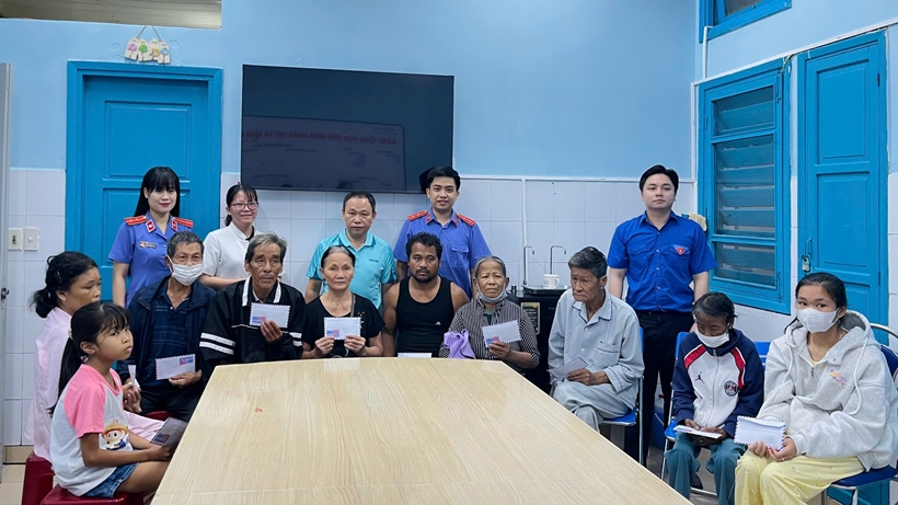 | Kiểm sát viên thăm hỏi, tặng quà bệnh nhân. |