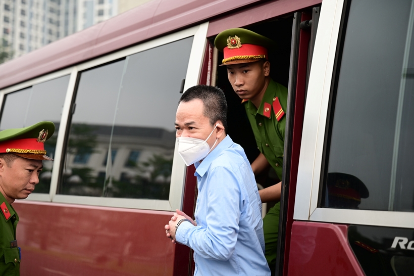 Ghi nhận của phóng viên Báo Bảo vệ pháp luật, hơn 7h sáng cùng ngày, các bị cáo đã được áp giải đến phiên tòa. Cựu Thứ trưởng Bộ NN&PTNT Hoàng Văn Thắng và các bị cáo đeo khẩu trang kín mặt.