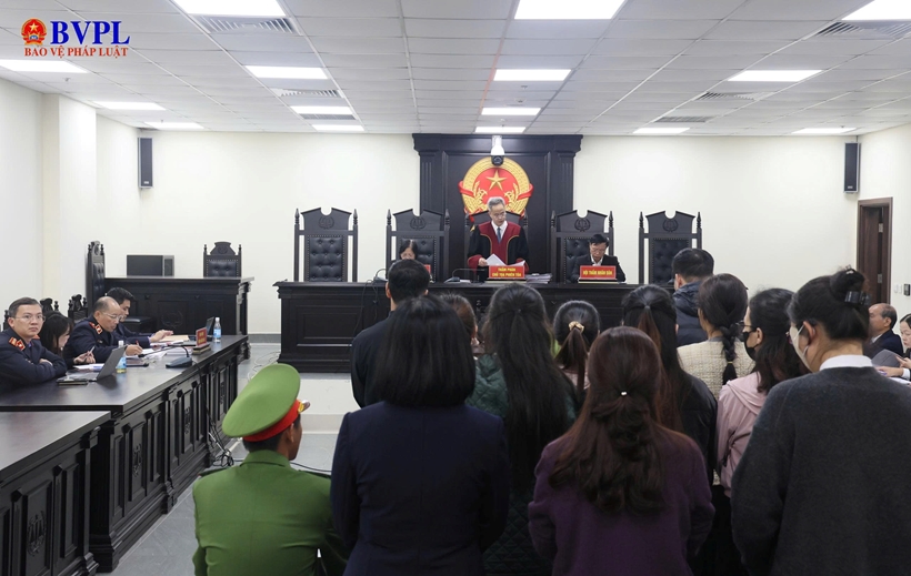 | Các bị cáo tại phiên tòa. Ảnh: Hồng Nguyên |