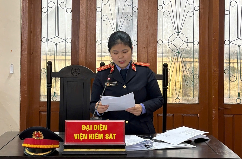 | Kiểm sát viên công bố cáo trạng tại phiên tòa. |