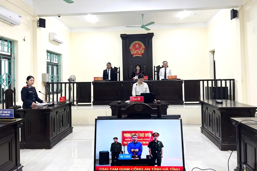 Phiên tòa được tổ chức theo hình thức trực tuyến, kết nối giữa điểm cầu trung tâm tại TAND khu vực 1 - Hà Tĩnh và điểm cầu thành phần tại Trại tạm giam Công an tỉnh Hà Tĩnh, bảo đảm đúng quy định của Nghị quyết 33/2021/QH15 của Quốc hội về xét xử trực tuyến.