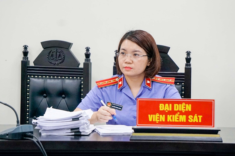 | Đại diện VKSND TP Hà Nội thực hành quyền công tố và kiểm sát xét xử tại phiên tòa. |