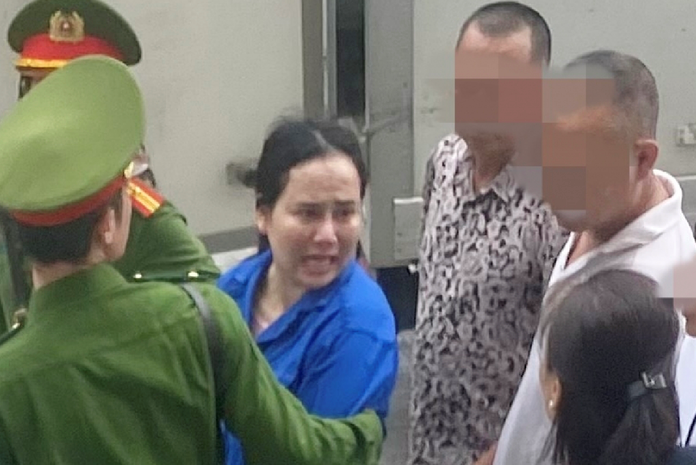 | Lực lượng cảnh sát hỗ trợ tư pháp dẫn giải bị cáo Nguyễn Thị Hồng Nhung đến phiên tòa. |