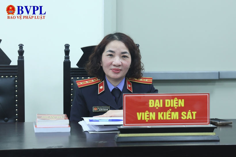 | Kiểm sát viên Nguyễn Thanh Vân, Phòng 2 - VKSND TP Hà Nội thực hành quyền công tố và kiểm sát xét xử tại phiên tòa. |