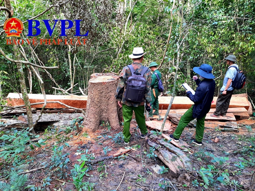 Một số hình ảnh khám nghiệm hiện trường vụ phá rừng tại khu Bảo tồn thiên nhiên Ea Sô.