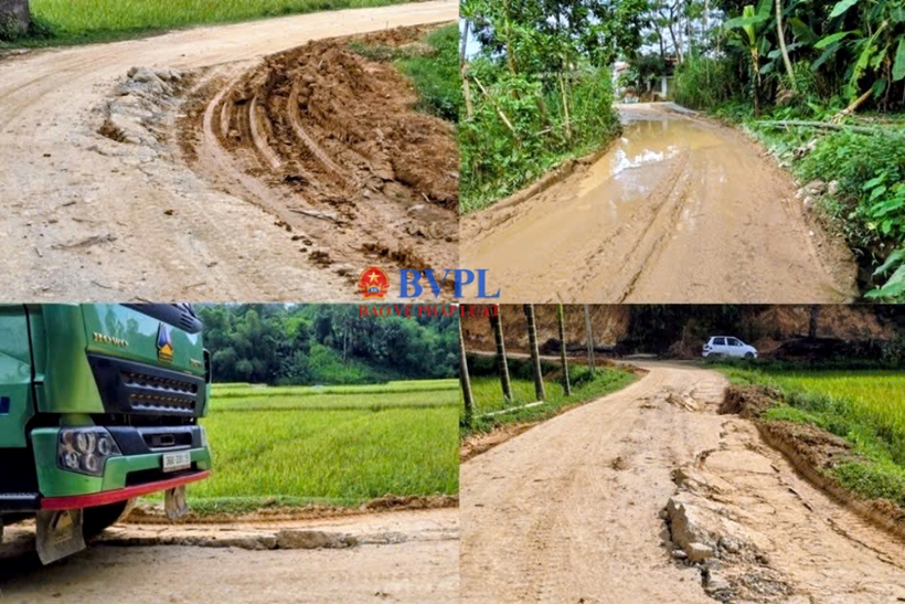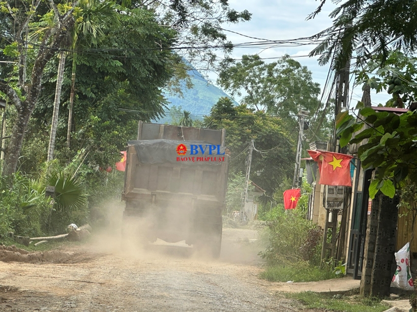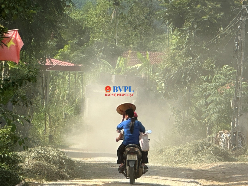 Con đường bê tông liên thôn vốn để phục vụ đi lại của người dân cũng bị “băm nát” bùn đất lấm lem, nhiều đoạn sụt lún, nhấp nhô, hình thành ổ voi, ổ gà nguy hiểm. Người dân phản ánh, trời mưa thì đường biến thành bãi lầy, còn nắng lên thì bụi mù mịt, ảnh hưởng nghiêm trọng đến đời sống thường nhật.