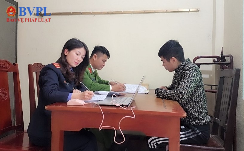 | Kiểm sát viên VKSND huyện Hậu Lộc trực tiếp hỏi cung bị can. |