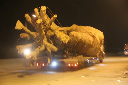 Theo hình ảnh mà độc giả cung cấp cho báo Bảo vệ pháp luật, khoảng 20h ngày 26/3, xe đầu kéo có rơ moóc mang BKS 73R-00338 đã chở theo một gốc cây gỗ siêu khủng đi trên Quốc lộ 1A từ Quảng Bình qua địa phận tỉnh Hà Tĩnh để ra các tỉnh phía Bắc. Gốc cây này to lớn và dài đến mức nằm choán hết rơ moóc, phần ngọn cây dẫu đã cắt tỉa vẫn dư ra phía sau rơ moóc 1/3 thân cây.