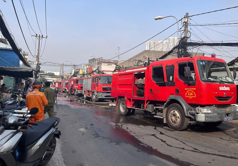 | Lực lượng PCCC & CNCH Công an TP Hồ Chí Minh đã điều động nhiều xe chữa cháy chuyên dụng. |