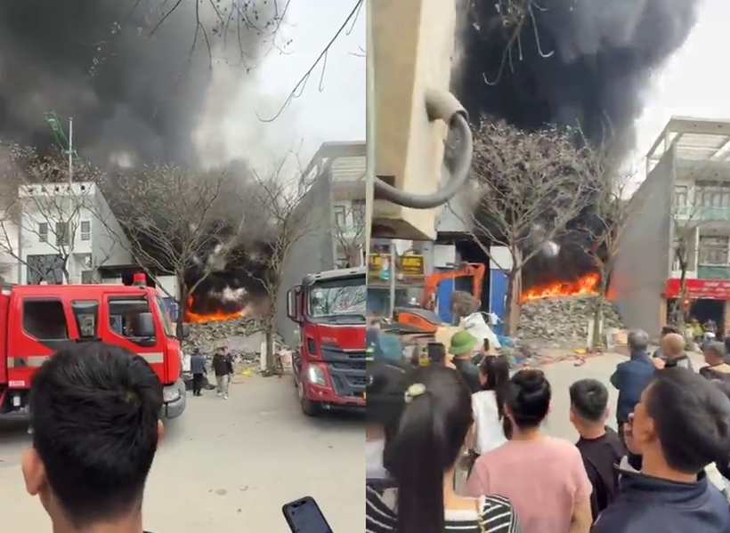 Một nhân chứng tại hiện trường cho biết, khoảng gần 14h người dân phát hiện đám cháy và thông báo cho lực lượng chữa cháy. Vụ cháy xảy ra tại kho chứa nhựa, dây điện.