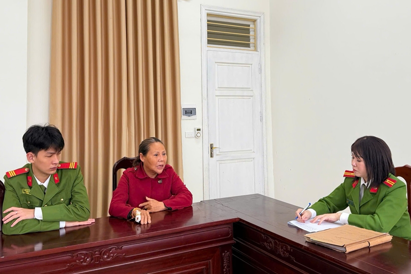 | Nguyễn Thị Bé tại cơ quan Công an. |