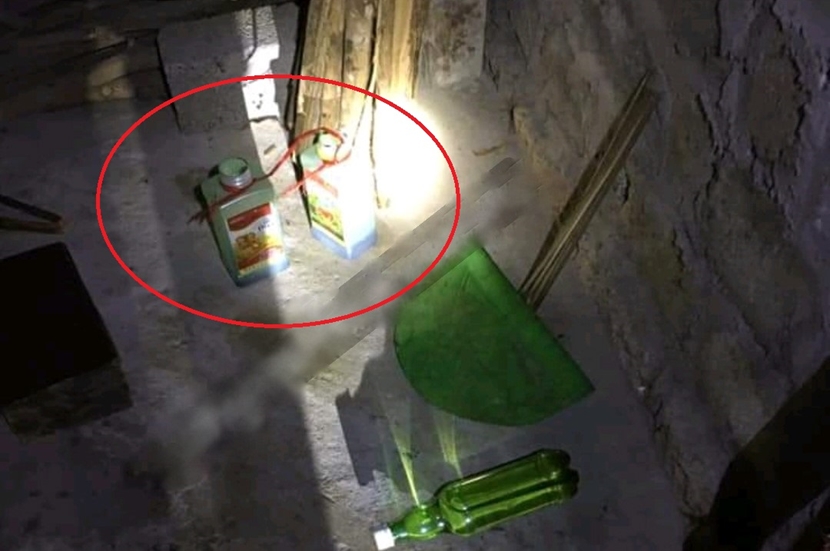 | 2 chai được cho là thuốc diệt cỏ để lại hiện trường. |