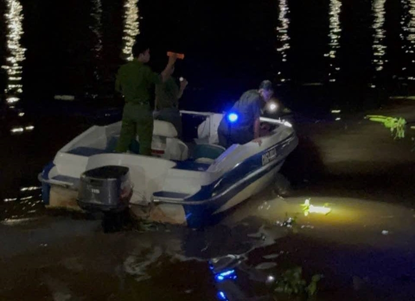 Lực lượng cứu hộ dùng xuồng máy, lưới và đèn chiếu sáng để dò tìm dọc hai bên bờ sông, đồng thời thông báo đến các hộ dân sinh sống ven sông hỗ trợ đến 3h ngày 14/10, Công an vớt thi thể anh X., cách hiện trường khoảng 2km.