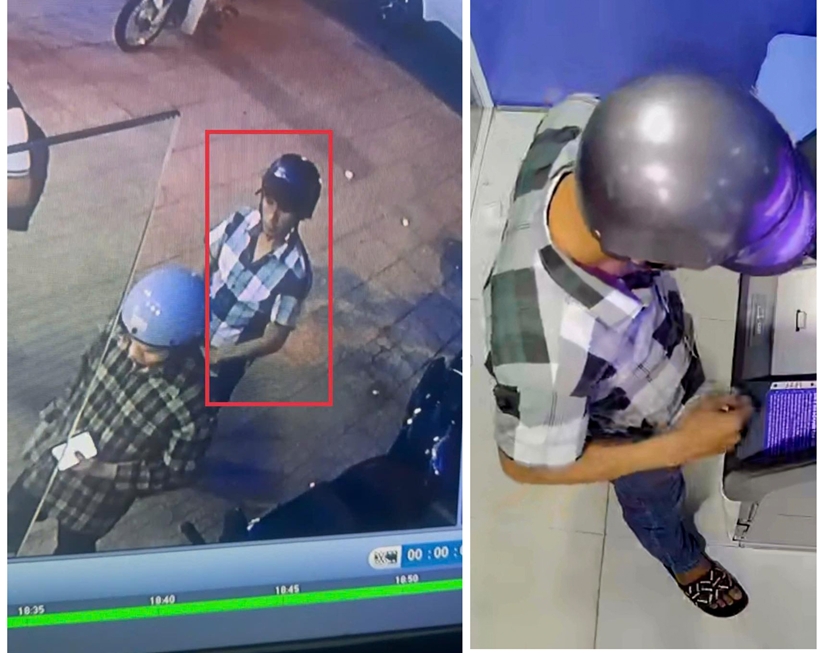 Các video trích xuất từ camera an ninh cho thấy, người này là một thanh niên, mặc áo kẻ ca rô xanh đen, tiếp cận cây ATM bằng xe máy.