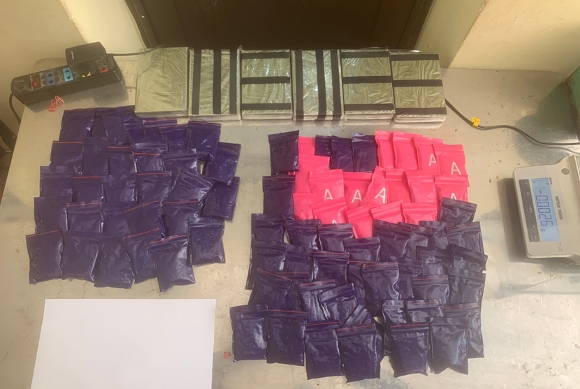 Tại hiện trường, lực lượng chức năng đã thu giữ 6 bánh heroin, 17.000 viên ma túy tổng hợp, 1 con dao mèo cùng một số vật chứng liên quan khác.