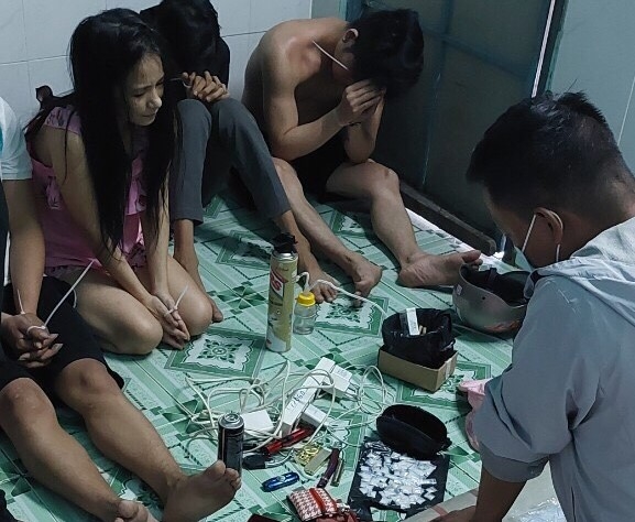 | Nhóm đối tượng đang sử dụng ma túy thì bị phát hiện. (Ảnh:CA) |