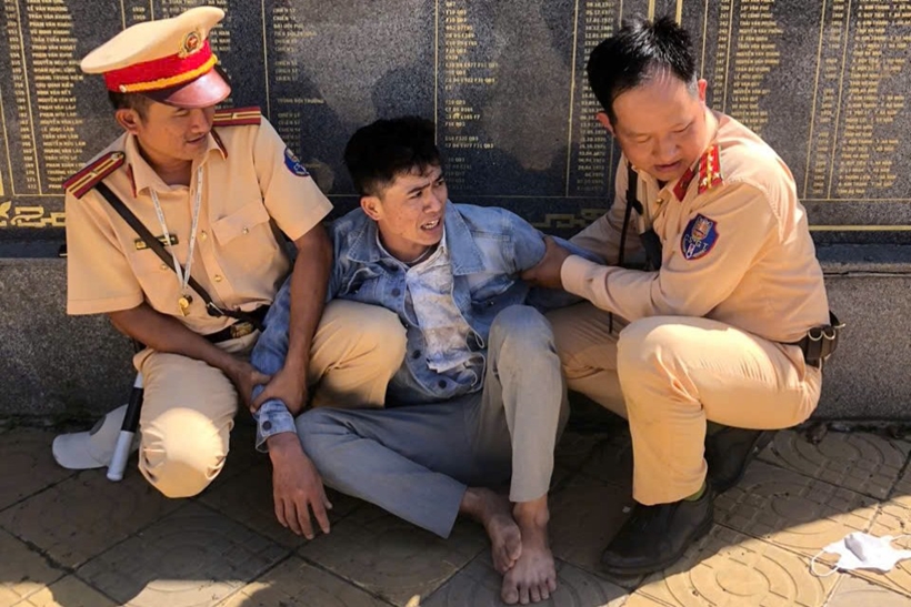 | Đối tượng bị lực lượng CSGT khống chế |