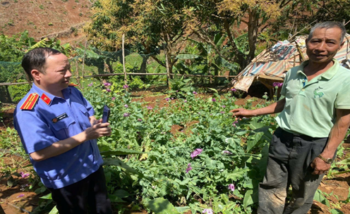 Trước đó, hồi 9h30’, ngày 26/2/2026, tổ công tác Phòng CSĐT tội phạm về ma túy, Công an tỉnh Sơn La và Công an xã Sốp Cộp làm nhiệm vụ tại bản Co Đứa, xã Sốp Cộp phát hiện tại vườn trồng rau của ông Mòng Văn Khun, có trồng nhiều cây (nghi là cây thuốc phiện) đang trong giai đoạn sinh trưởng, được trồng trái phép nhằm mục đích thu hoạch lấy nhựa.