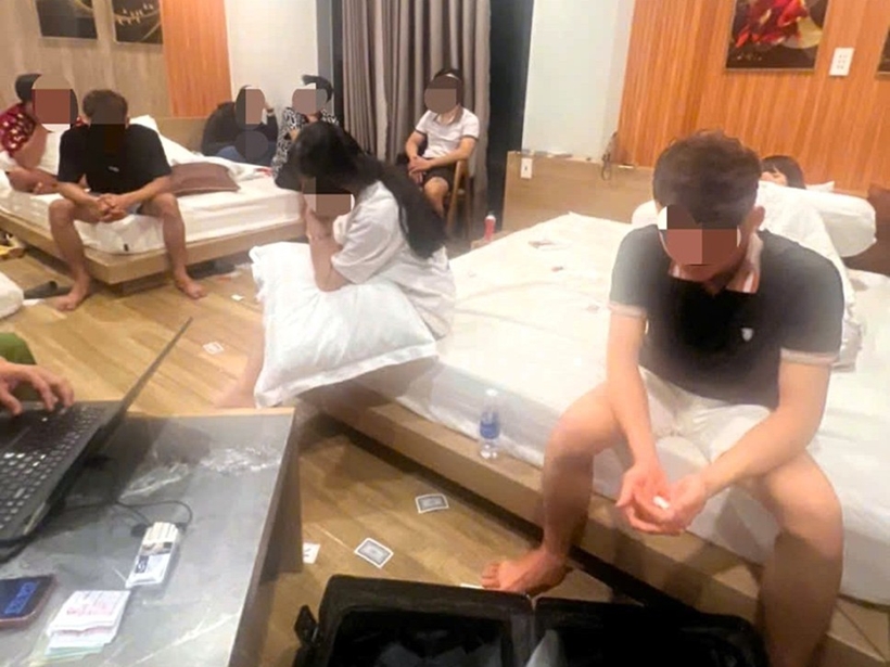 Qua kiểm tra, lực lượng Công an phát hiện trong phòng có 8 đối tượng (5 nam, 3 nữ) gồm: M.G.H (SN 2012), D.N.Đ (SN 2010), N.P.V (SN 2006), N.N.T (SN 2007), P.N.H (SN 2007), P.L.V (SN 2009), P.B.Q (SN 2012), N.Q.K (SN 2005) đang "tổ chức sử dụng trái phép chất ma túy".