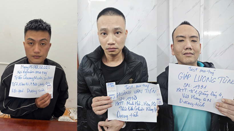 Trước đó, ngày 23/12/2025, Cơ quan Cảnh sát điều tra Công an tỉnh Quảng Ninh cũng ra quyết định khởi tố vụ án, khởi tố bị can đối với 3 đối tượng về các hành vi Tổ chức sử dụng trái phép chất ma túy và Mua bán trái phép chất ma túy. Các bị can gồm Giáp Lương Tùng (SN 1991, trú phường Việt Hưng, Quảng Ninh) và Hoàng Văn Tiến (SN 1993, trú xã Hồng Minh, tỉnh Hưng Yên) bị khởi tố về hành vi Tổ chức sử dụng trái phép chất ma túy; Trần Quang Minh (SN 2001, trú phường Bãi Cháy, Quảng Ninh) bị khởi tố về hành vi Mua bán trái phép chất ma túy.