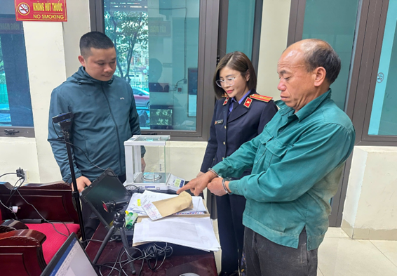 | Kiểm sát viên tham gia lấy lời khai đối tượng. |